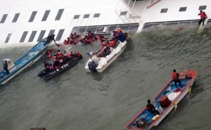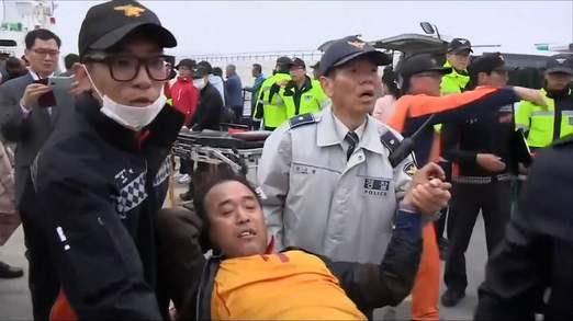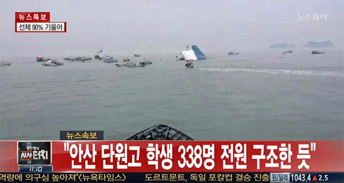 “We heard a big thumping sound and the boat stopped,” one passenger told the YTN by telephone. “The boat is tilting and we have to hold on to something to stay seated.”
