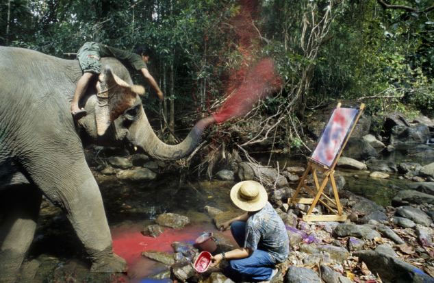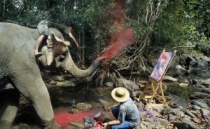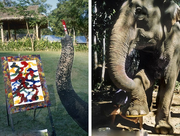 It should be also note that the elephants use a special non-toxic paint and the paint brushes are specially adapted so as the elephants can easily and comfortably hold them with their trunks.