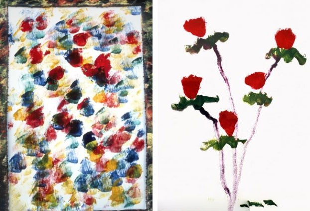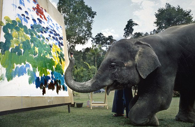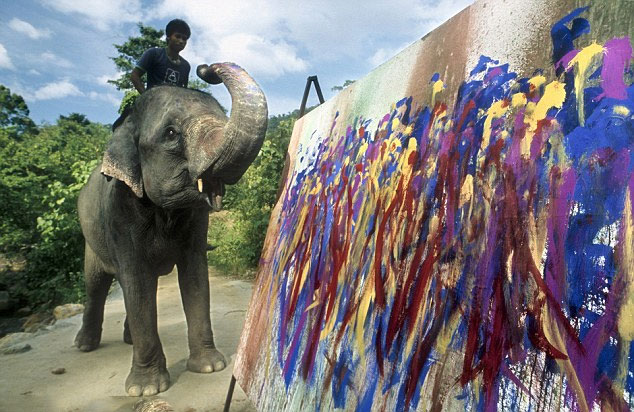 When they paint, the elephants are guided by a trainer who gives them instructions rubbing their ears in a certain way.