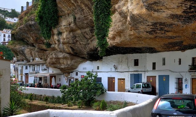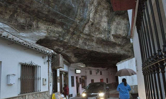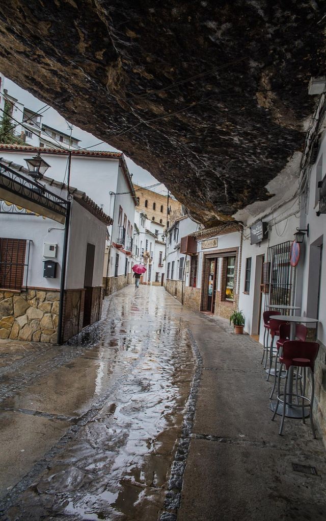 The Spanish city Setenil de las Bodegas in Andalusia, with about 3,000 inhabitants, is built under huge rocks.