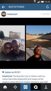 This is just the latest stop on his island hop aboard that is part of a sailing trip that began on the isle of Myconos with a stop-over in Athens where he took a selfie at the Acropolis and Kalimarmaro Stadium. The 5-time NBA champion appears relaxed, casual and charmed by the beauty of the Greek sites.