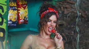 The Brazillian model was posing seductively with a lollipop. It was certainly a different look for Alessandra, who is used to posing with angel wings at Victoria Secret’s shoots!