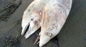 According to reports, one of the dolphin’s heads was not fully developed: the eyes were not properly opened, neither was one of the blow holes.