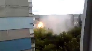 A resident of the city posted a YouTube video of the explosion in Donetsk, which is under the control of pro-Russian separatists.