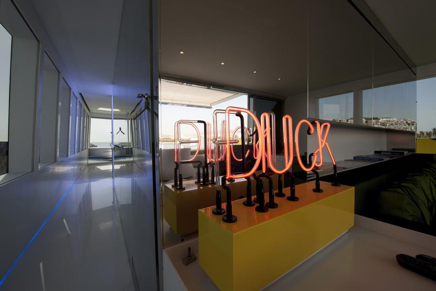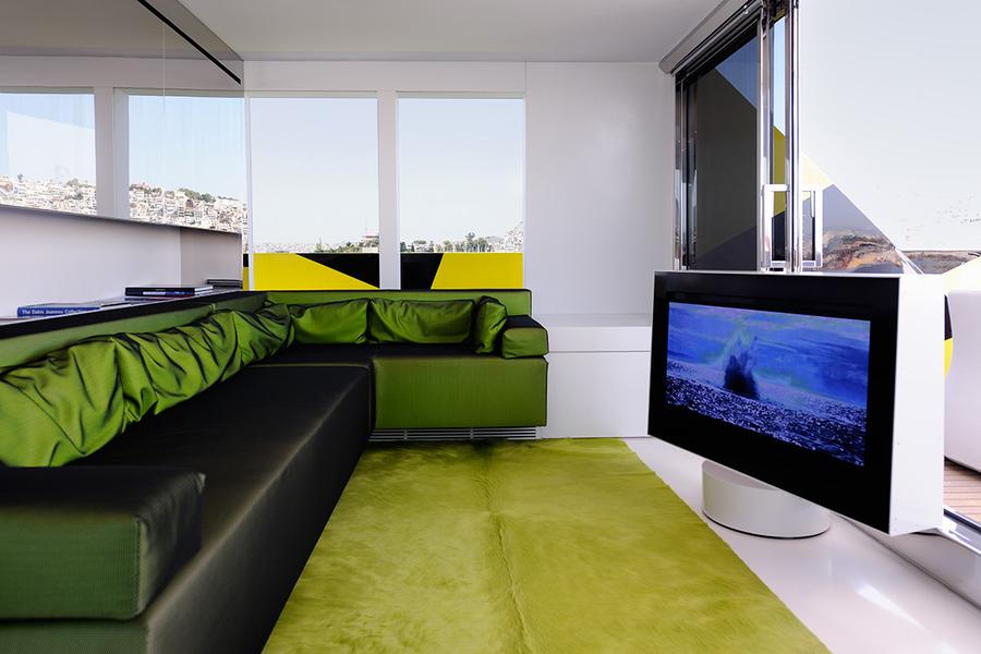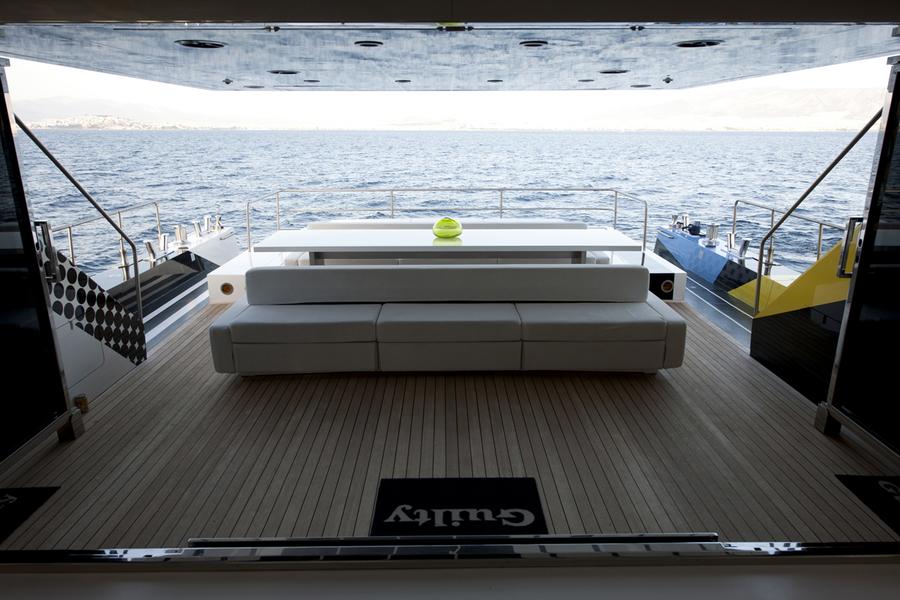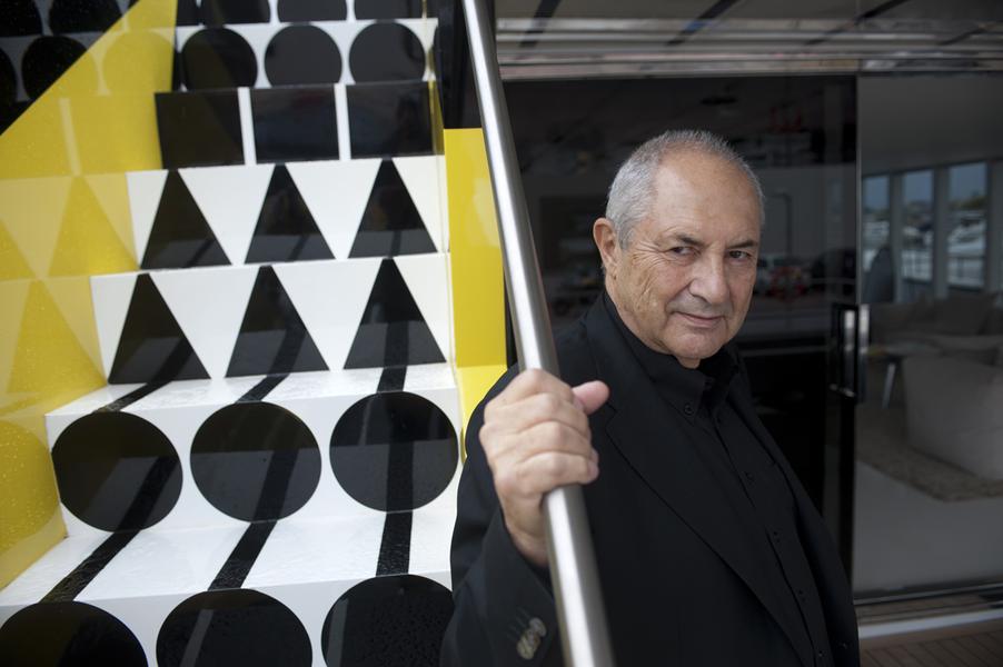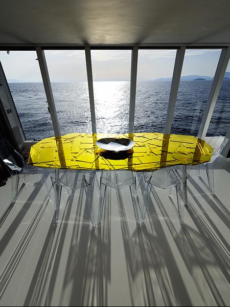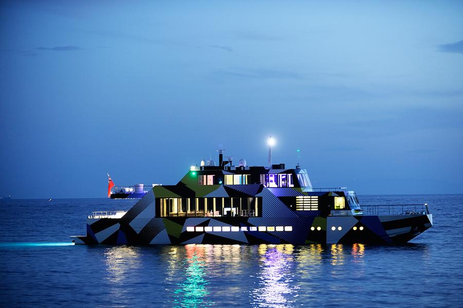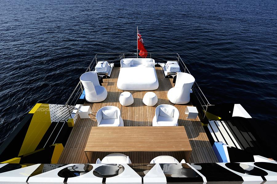 The 115-foot luxury craft docked at Athens’ Piraeus Port is a collaboration between U.S. artist Jeff Koons and Italian yacht designer Ivana Porfiri. The pop exterior is reminiscent of Roy Lichtenstein’s artworks with bold geometric designs and yellow rhombuses, pink triangles and blue polygons apparently inspired by WWII camouflage.