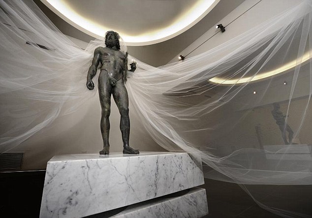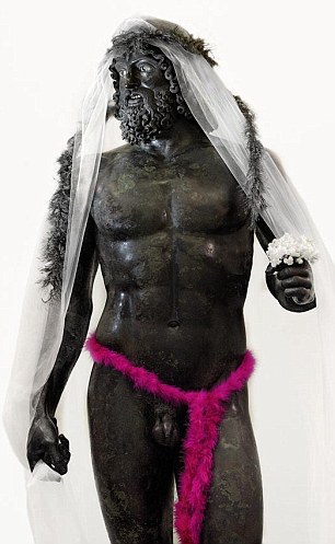 2,500-year-old Greek warrior statues were given a controversial makeover for a photo shoot by French photographer Gerald Bruneau. The ancient Riace Bronzes, created as models of manliness, lost all their masculine dignity as the French photographer Gerald Bruneau covered them in tulle, leopard underwear and and feathered boas. The two famous full-size Greek bronzes of naked bearded warriors, cast about 460–420 BC and found in the sea near Riace in 1972 had just gone through a restoration process and were looking at their finest when subjected to this treatment by Bruneau in order to make a statement about gay marriage.