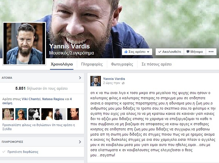 His son’s goodbye, though, was the one that touched everyone’s heart. Yannis Vardis chose to say publicly his farewell to his father yesterday.