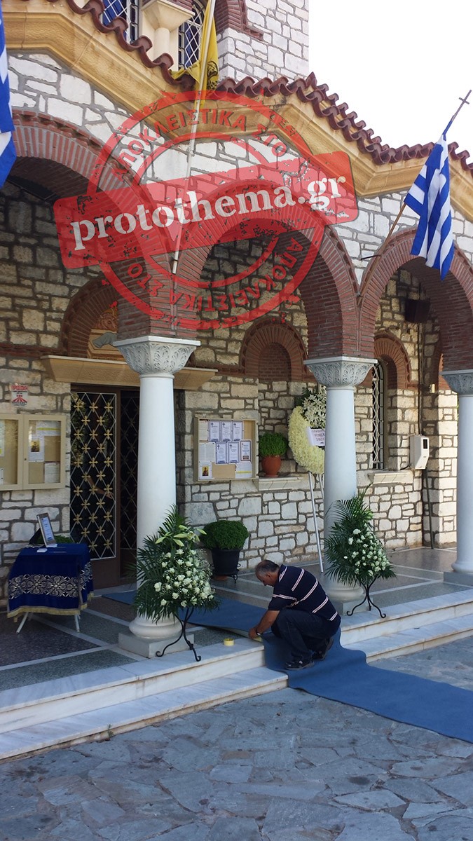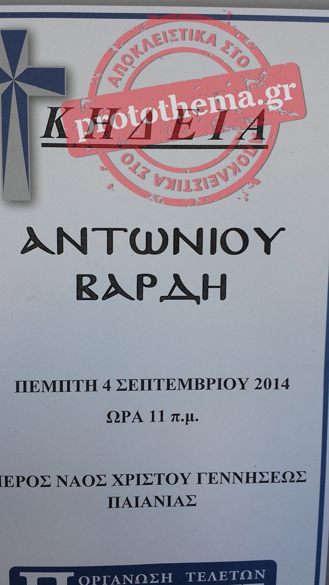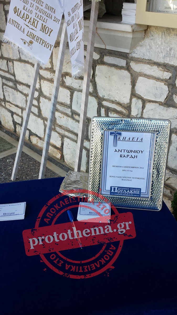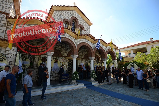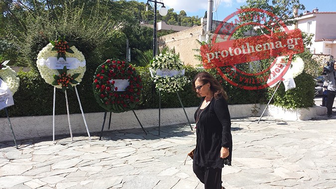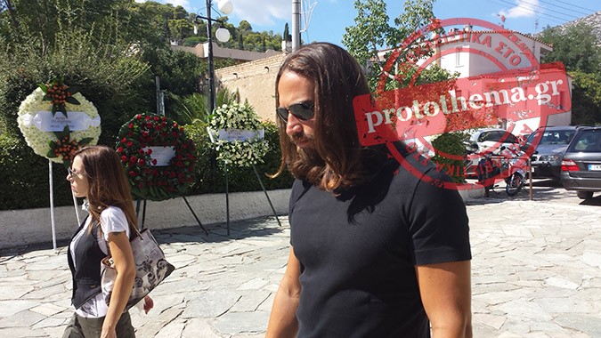 The funeral for Greece’s great singer and songwriter Antonis Vardis took place at the Holy Church of the Nativity of Christ in Paiania. Famous local talents and celebrities were present to pay their last respects at the ceremony. Despite the family’s request for donations to be made to charity instead of wreaths and flowers, there were numerous funeral wreaths including one by Prime Minister Antonis Samaras. Wreaths were also sent by the most talented singers and musicians from the local scene with big names such as Katy Gray, George and Anna Dalara, Natasha Theodoridou, Angela Dimitriou, Stamatis Gonidis and Pitsa Papadopoulou.   The deceased singer’s partner, Filothei, arrived at the church at 10 a.m. looking distraught, and fighting back the tears before breaking down into sobs. She was accompanied by her daughter, Kallisto. Yannis Vardis, the great singer’s son, arrived soon after, looking daunted by the difficult task of bringing his father’s coffin to the funeral. Throughout the difficult vigil prior to the funeral, the family joined together. Yannis held tightly onto his partner and his sister, all of them huddled close and giving each other courage. 1 2 Filothei, the singer’s partner was distraught. 3 Yannis arrived with his father’s coffin. 4 5 6 Mother and daughter give each other strength. 7 9 10 12 “You’ll always exist through your songs. Have a good journey, my friend,” said the wreath of Greek singer Angela Dimitriou. 20140904_094232 Prime Minister Antonis Samaras, at the NATO summit today, did not neglect to send his condolensces. 20140904_094252 20140904_094304 20140904_094317 20140904_094334 Local singer Stamatis Gonidis sent his heartfelt respects. 20140904_095013 The church courtyard was full of wreaths regardless of the family’s call to give to charity instead. 20140904_095135 20140904_095322 20140904_095835 20140904_102648 Singer Haris Alexiou, one of the most popular singers of Greece, was present to honor the man who had many friends in the music world. 20140904_110009 20140904_110234 Bestselling singer and recording artist Natasha Theodoridou. 20140904_110538 Young singer Kostas Karafotis showed up to pay tribute to the man who had helped shape the local music scene. 20140904_110811 IMG_4126 IMG_4127 IMG_4128