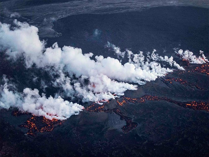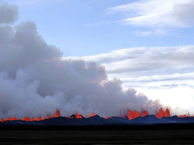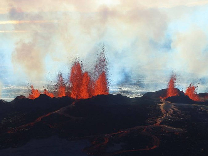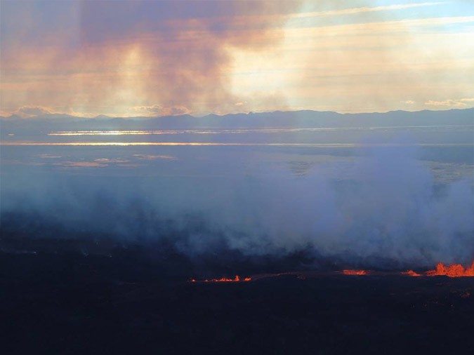 The passengers of the Icelandair flight had the opportunity to enjoy a unique view of the erupting Bardarbunga volcano and the amazing lava display.