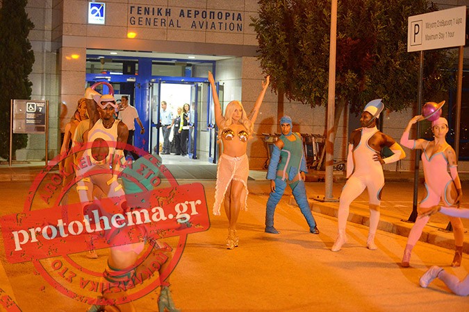 The plane landed with a slight delay at the Greek Eleftherios Venizelos airport at 19:15. A brief dance routine at the airport was her way of saying thank you to the eagerly awaiting fans.