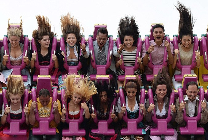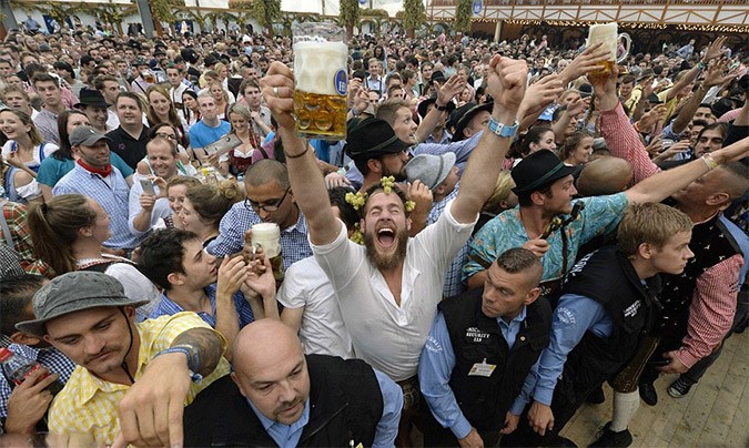 Oktoberfest fans flock to Munich from all over the world to enjoy unique beers and fine food and see the impressive young waitresses who skillfully serve glasses of 1 liter beer each.