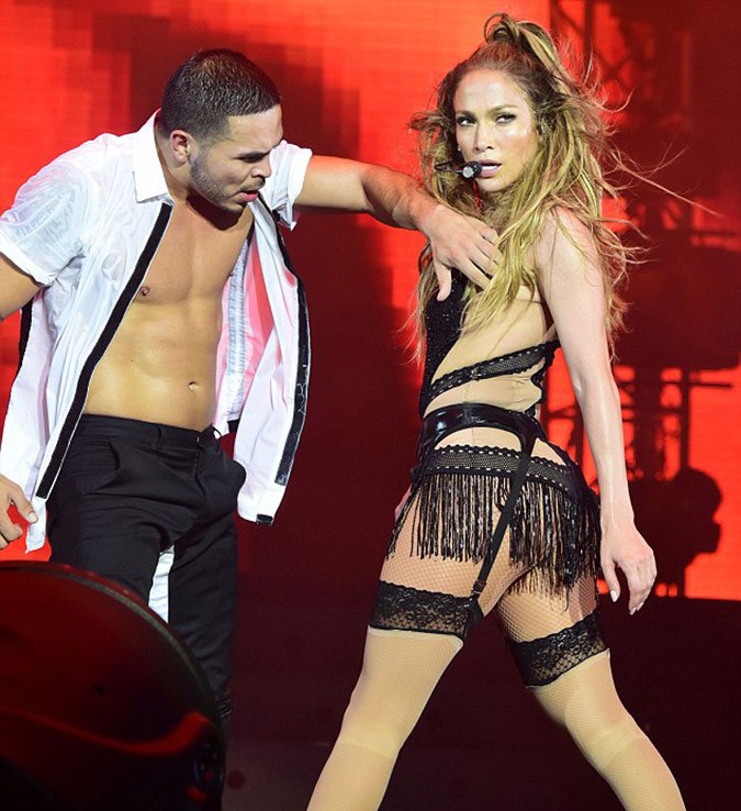 Wearing a sexy tasselled black bodice with a nude-coloured underlay, JLo showed off her flawless body and exhibited many raunchy moves on the stage.