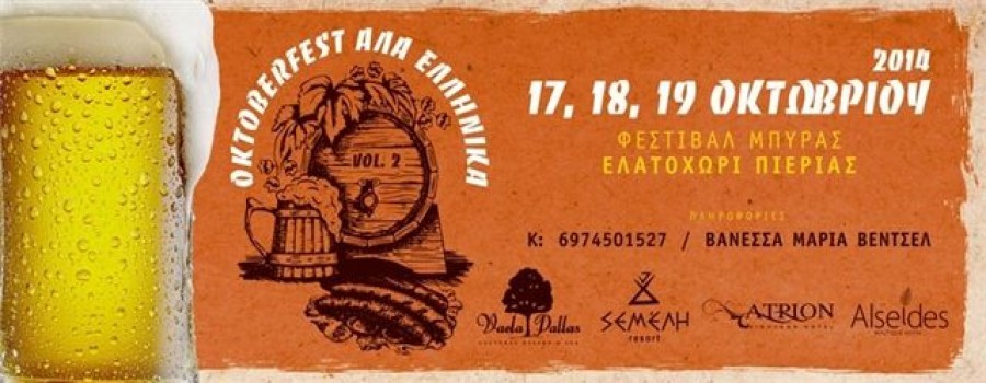 The second Greek Oktoberfest Greek will take place from 17-19 October at Elatochori, Pieria, northern Greece. Visitors will have the chance to taste Greek beers, sausages, Greek dishes and have a lot of fun while dancing and listening to the music.
