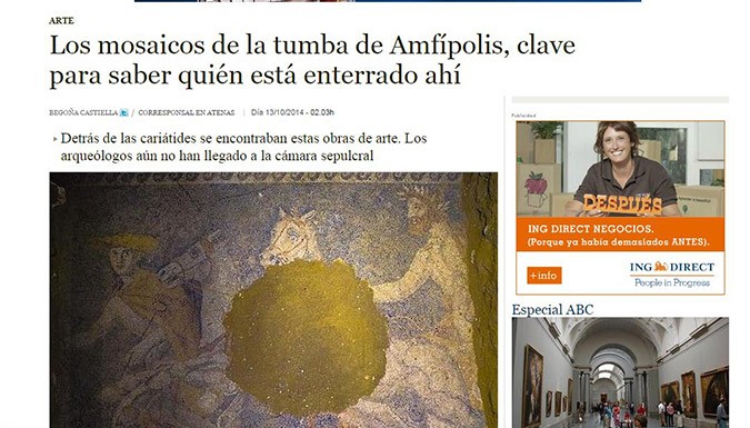 “Holly Hermes” is another title of «nbcnews.com», while the Spanish «ABC» writes that “the mosaics in the tomb of Amphipolis is the key to who is buried there.”