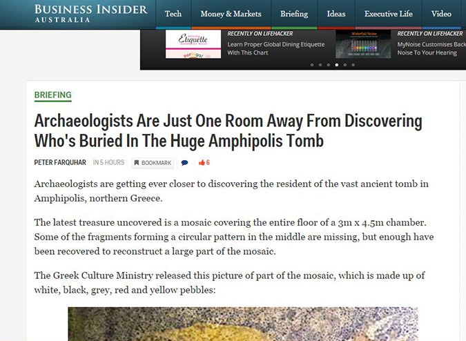 “Archaeologists are only a room away from discovering who is buried in the tomb of Amphipolis”, writes «Business Insider in Australia.
