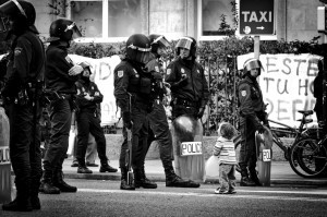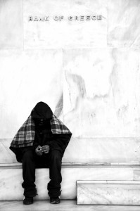 Greek photographer Nikos Christofakis won the “Shoot the Crisis” photograph competition held by the left GUE/NGL party at the European Parliament. His black and white photograph of a homeless man outside the Bank of Greece juxtaposes the two worlds of the economic crisis just as Greece took on the helm of the rotating European presidency.