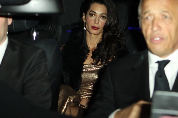 Alamuddin was wearing a bronze dress combined with a black faux fur resembling a Hollywood star, and Clooney looked dapper in his charcoal suit.