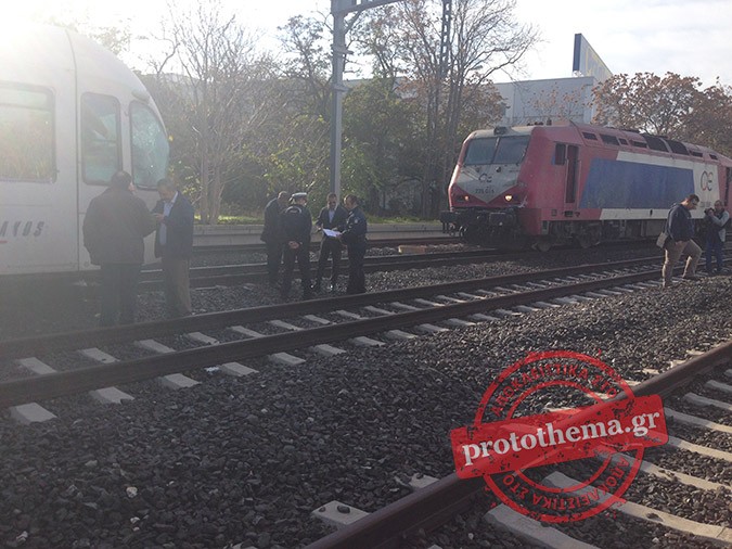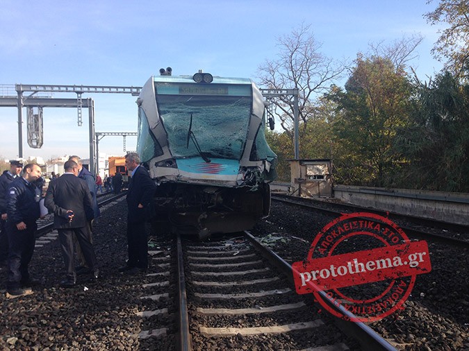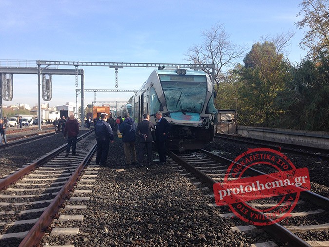 The accident, which is attributed to human mistake, happened when a train with 15 passengers carrying out the Halkida-Piraeus itinerary collided with an empty train that was stationed at Rouf and was scheduled to depart for Kalambaka.