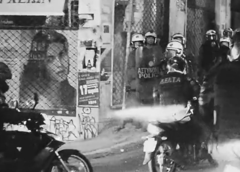 The Greek police are investigating an incident at Exarheia following the demonstration commemorating the 1973 student uprising against the military junta on November 17. Footage shows the riot police driving through Exarheia, harrassing locals and also appear to beat a kiosk owner and take water from his kiosk without paying. An inquiry has started and the perpetrators seen displaying violence in the video have been found.