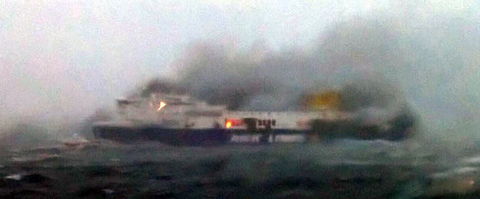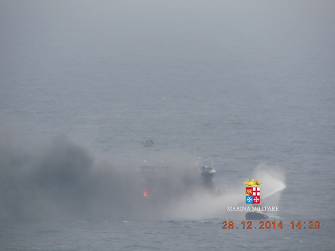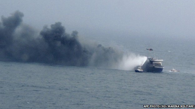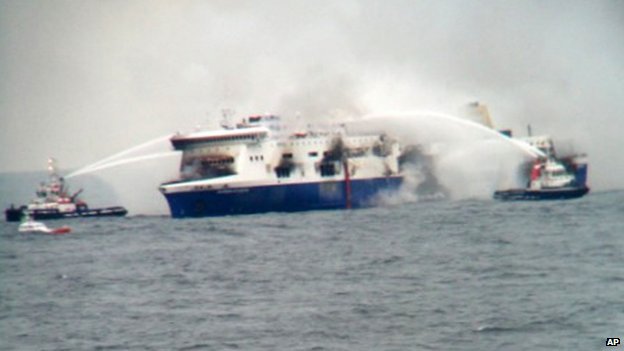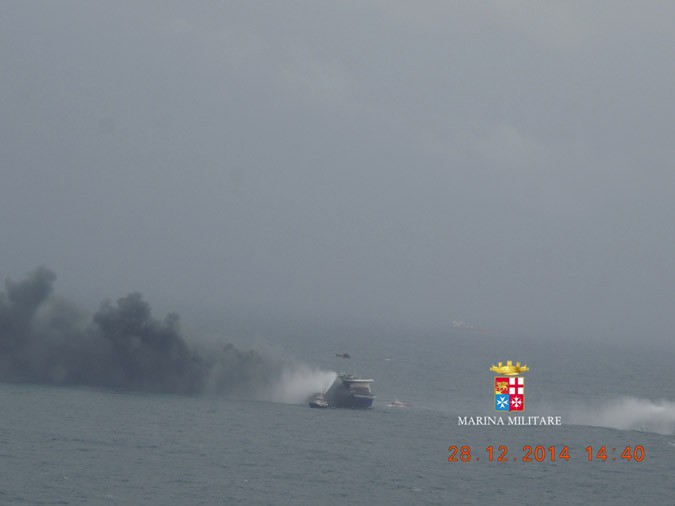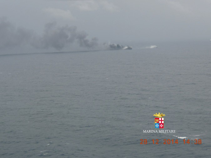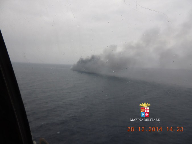 The ferry is enveloped in thick smoke even after the Italian Coast Guard managed to extinguish these at 8.30 p.m., around 16 hours after they began. The denseness of the smoke leads the Coast Guard to believe that there may be hot spots in the ship.
