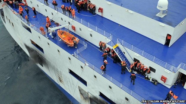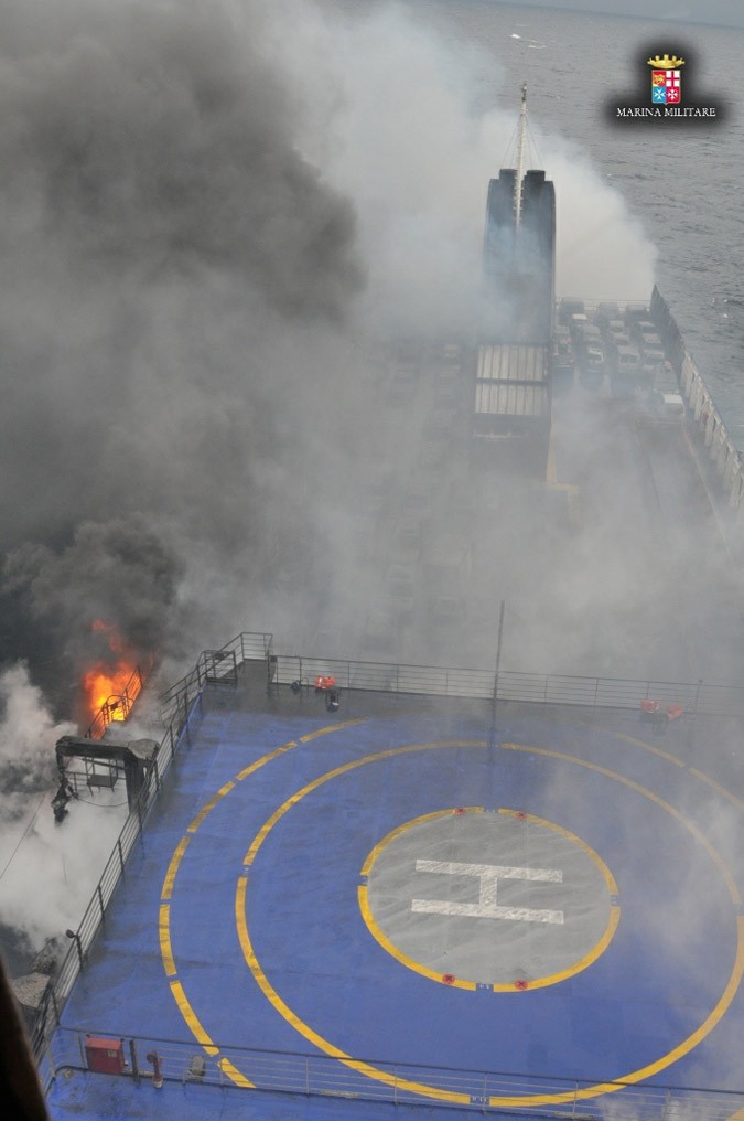 The distress signal was sent after the fire started at the car deck, carrying 222 vehicles. Gale-force winds and towering waves have hampered rescue efforts. The evacuation is being carried out in extreme conditions as the Italian and Greek military, coast guard rescue crews and helicopter teams are carrying out operations to save the people on the ship. Merchant ships in the area have created a ring around the ferry to protect it from the massive waves.