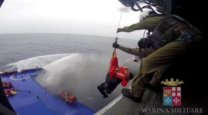 Efforts to tow the ship to a port in Italy have failed. 57-year-old Greek passenger George Doulis died from hypothermia after slipping overboard.