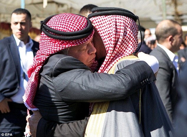 This is the moment where Queen of Jordan, Rania, embraces the wife of the Jordanian pilot burned alive by ISIS jihadists.