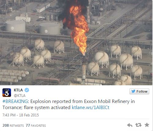 A strong explosion took place in Exxon Mobil’s Torrance refinery. Emergency services which rushed to the spot confirmed the raging fire and the explosion which took place within the compound.