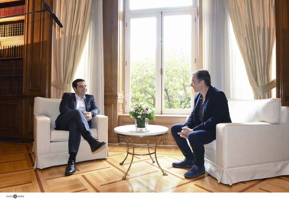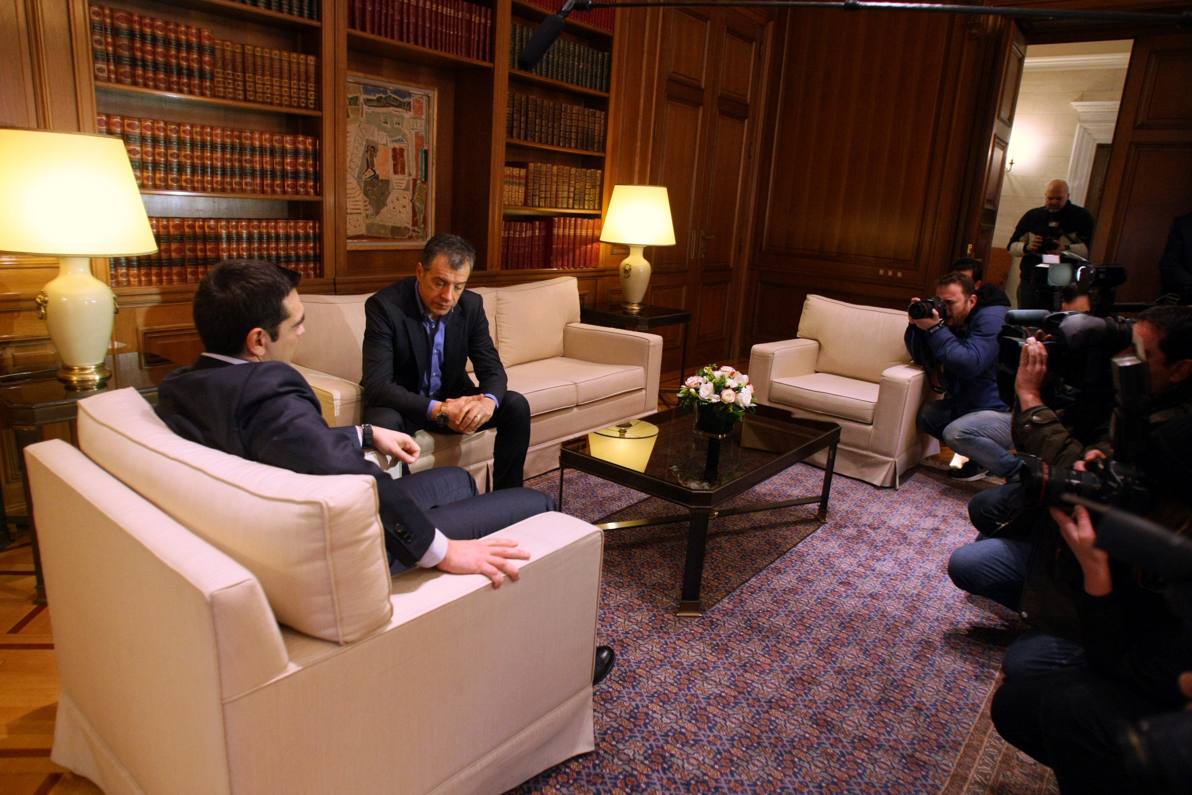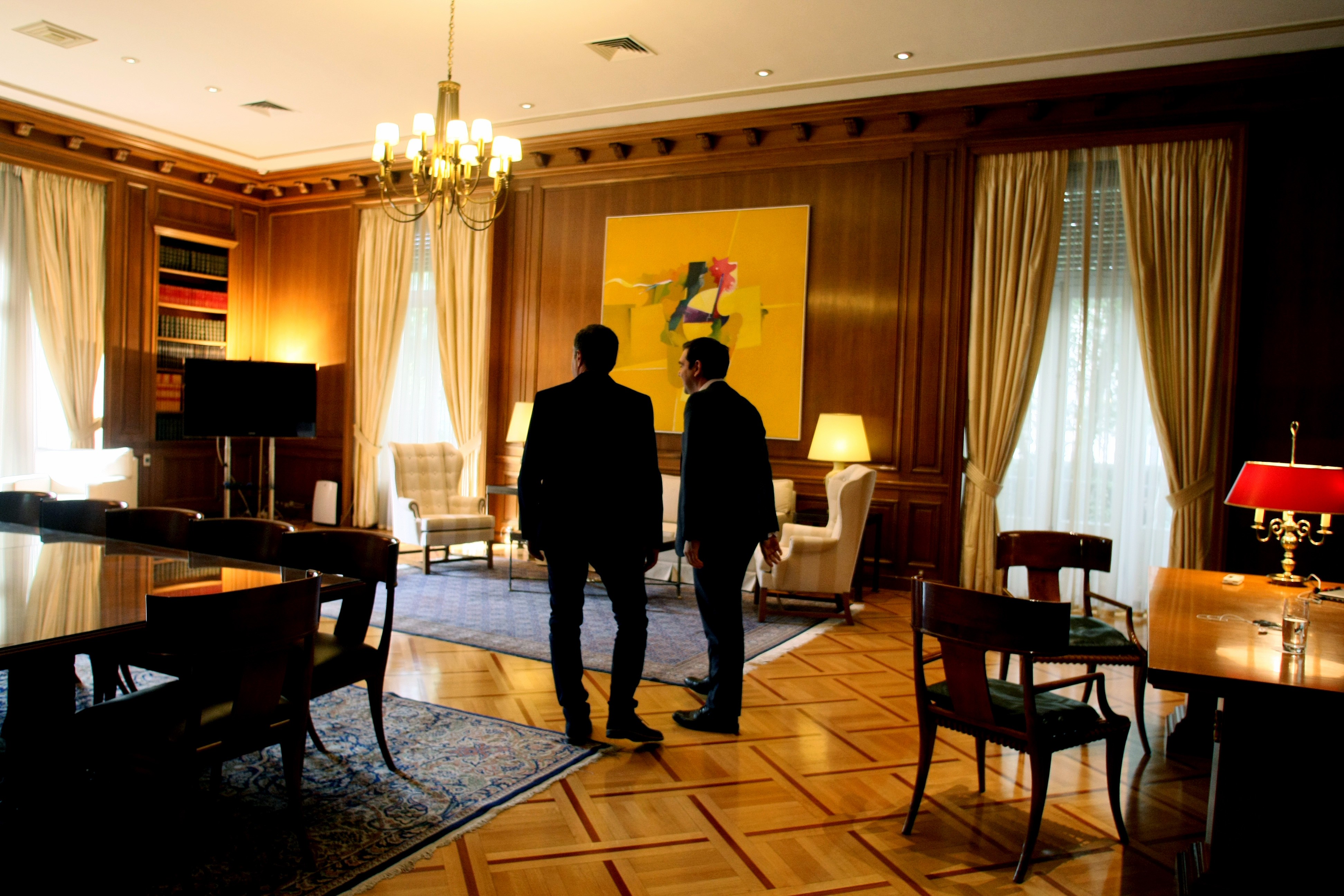 Tsipras gave a grand tour to political rival Stavros Theodorakis this week, as the latter was the first official visitor to the newly decorated office.