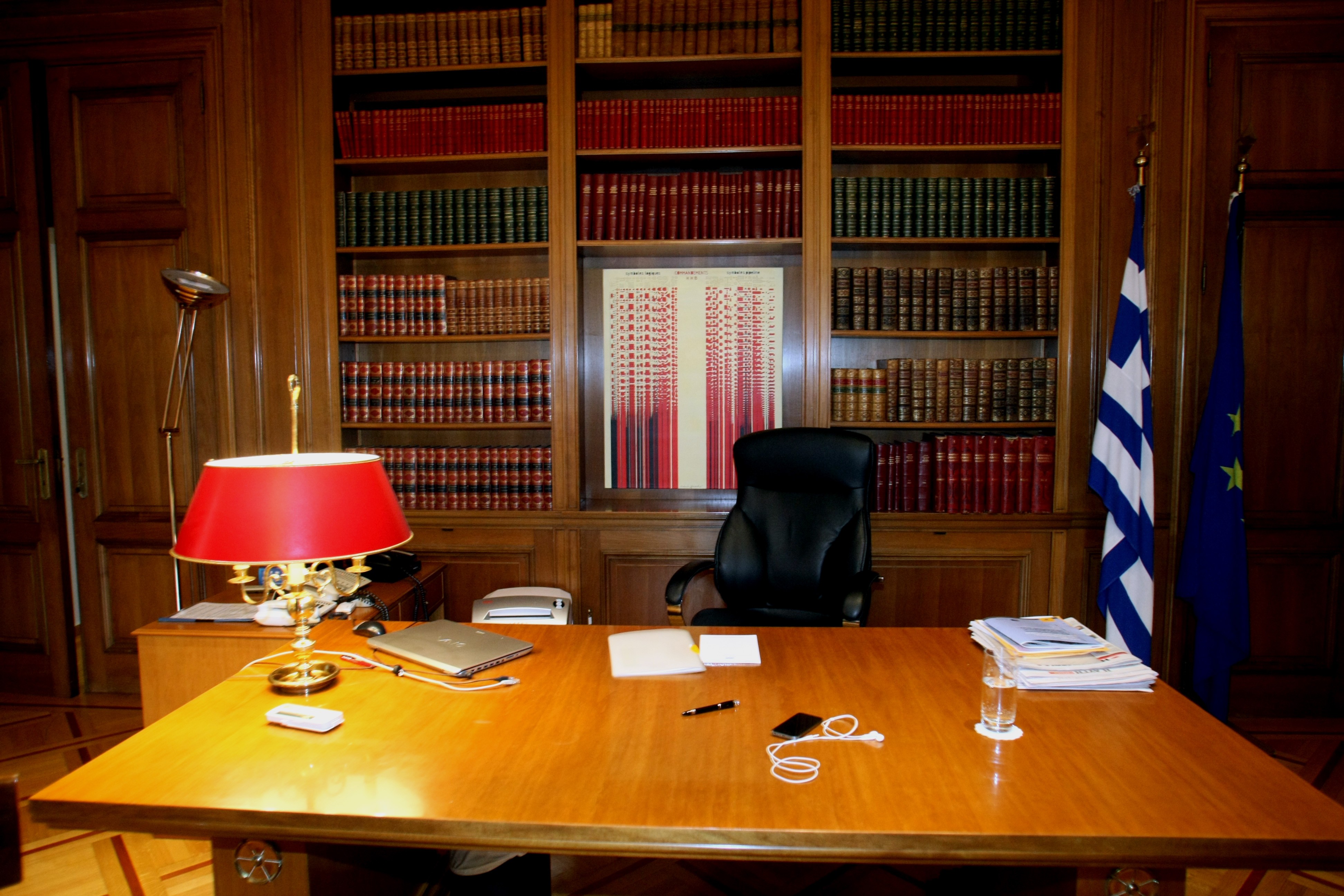 New or rearranged furniture and paintings on the walls give a fresh image to the Prime Minister’s office at the Maximos Mansion.