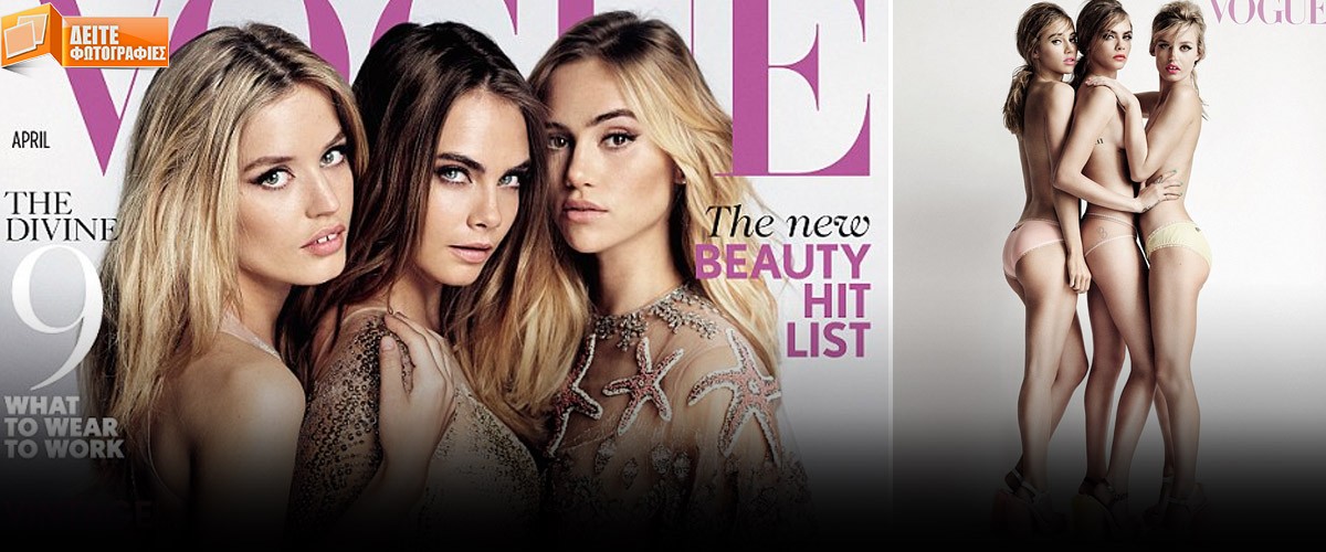Georgia May Jagger, Cara Delevingne and Suki Waterhouse appear on the cover of April Vogue with scanty clothes by Sophia Webster. Inside the issue they appear in their full glory. Photographed by Mario Testino the three best friends talk about their tight-knit relationship.