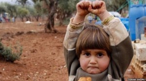 The child has been identified as Adi Hudea, a 4-year-old Syrian girl who lost her father in the 2012 Hama massacre. The photo was taken at the Atmen refugee camp on Syria’s border with Turkey last December.