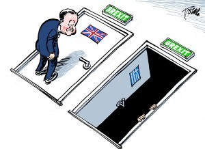 Efforts to keep Greece in the Eurozone are intensifying, while a referendum on whether the UK should remain a member of the EU will take place before December 31, 2017. Newly reelected British Prime Minister David Cameron reiterated the Conservative Party manifesto commitment to hold a referendum on the matter. A cartoon capturing the division and contradiction of a supposedly united Europe was published by user The Greek Analyst on Twitter.