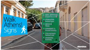 Green “WalkAthens!” signs with directions to surrounding locations in Greek and English were placed in 15 key points across the city center, including the Archeological Museum, Omonoia, Syntagma, Monastiraki, thisseio, Psyrri and Vathi squares.
