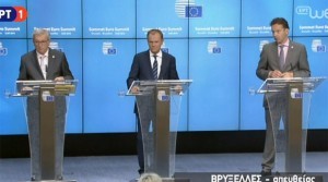European Council chief Donald Tusk announced a unanimous agreement for Greece at a press conference with European Commission President Jean-Claude Juncker and Eurogroup Chief Jeroen Dijsselbloemm who announced details of the agreement.
