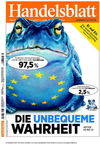 German magazine Handelsblatt unveils the awkward truth about Greek debt on its cover.