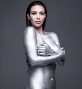 Kim Kardasian strikes again, as the busty celebrity has uploaded photos on her instagram account of a 2010 photo shoot for magazine ‘W’. The revealing photos show naked Kim covered silver paint!