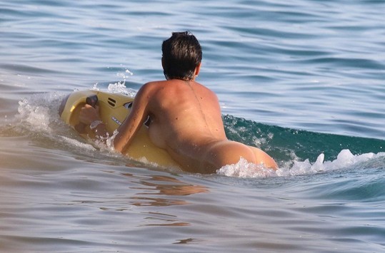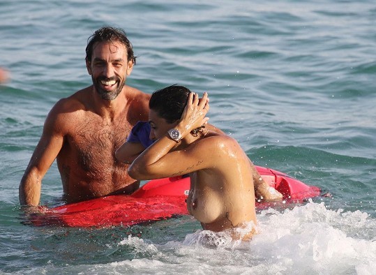 Perhaps its Jessica’s great sense of humor that is the secret to their love affair – or maybe her obvious assets! Mykonos beachgoers were treated to more than an eyeful when she wore her purple strapless bikini. Ideal for a tan but hard to keep on, the brunette had a few problems around the chest area.