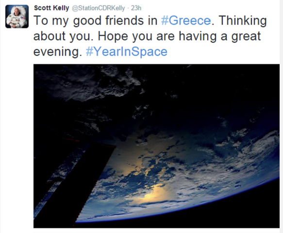 Scott Kelly, the US astronaut who posted twice on Greece on his twitter account ex-pressing his support and love to the Greek people, is in his sixth month on the Space Station and continues to snap photos from space. Here is a collection of some his best photos.