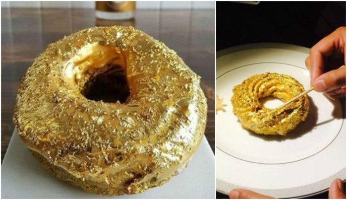 The golden ube doughnut has icing made with Cristal champagne and it is filled with ube mousse and champagne jelly, while its outside part is flecked with 24-karat gold. And the cost? $100 per doughnut.