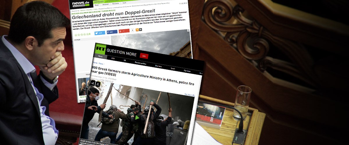 Apart from the farmers, the Greek government faces also a double Grexit, an exit from the euro zone and Schengen area because of the refugee crisis, says news.de.