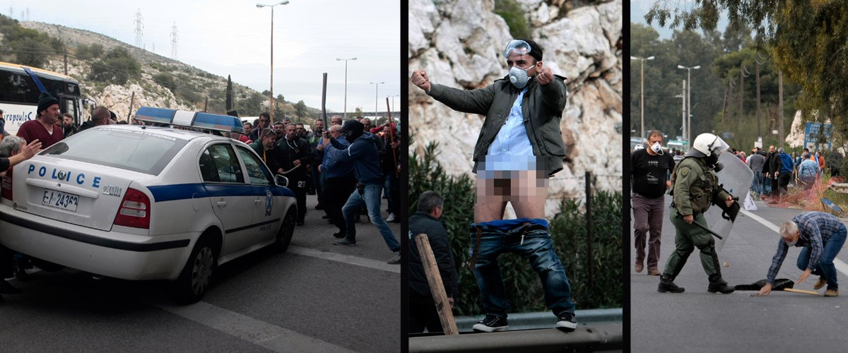 “We cannot understand why they prevent us from moving on. We left our tractors at Corinth, and police stopped us again here ” said the farmers of Peloponnese, who were stuck on the highway at Chaidari for hours since riot police did not allow them to pass through so as to participate in the mass protest in the center of Athens.