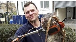 A photo of a monster rodent is going viral over the internet, after a British mechanic is shown holding up a huge rat with a pair of large tongs! Tony Smith says he found the gigantic scary critter lying dead behind a bush. Smith claims the rat weighs nearly 11 kilos and is 1.20 meters long! The mechanic works for a natural gas installation company and says he found the rodent near a play ground at Hackney Downs. ‘It is the largest rat I have ever seen in my life! I have a cat and a Jack Russell, but this much bulkier’, said the mechanic.
