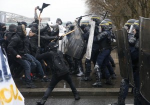 According to Le Figaro newspaper, a group of 30 young people broke the windows of banks and shops, while throwing rocks to police officers. Many people were arrested, according to Le Parisien.