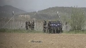 The video broadcast by MEGA TV channel shows clearly that FYROM police are in front of the fence.