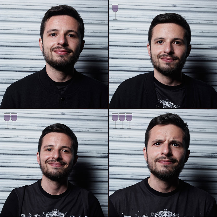 Brazilian photographer Marcos Alberti invited his friends to his studio to share a few glasses of wine and took some pictures of them after drinking one, two, three glasses of wine.