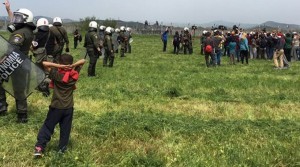 More people have started gathering at the spot covering their faces with scarves, while men of Greek riot police have already been deployed in front of the fence to prevent the refugees from reaching it.