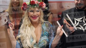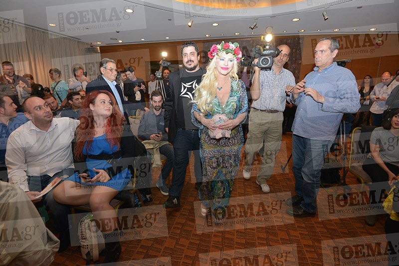 Wearing a wreath of red and pink roses on her head, red lipstick and a dress revealing her juicy figure, former porn star Ilona Staller, widely known by her stage name Cicciolina, attended the press conference ahead of the opening of Erotic Festival to take place in Tae Kwon Do stadium in Faliro, Athens.