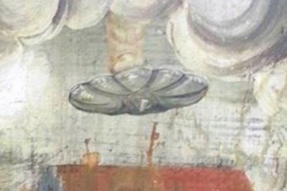 The painting is hanging on the wall of the 13th century monetary and shows an object which looks like a UFO.