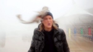 Video blogger Aimee was speaking to the camera amid a storm in the idyllic town of Barry in Wales. The wannabe weather girl suddenly gets slapped across the face by something after a spray of water splashes her! A flying fish had hit her in the face and knocked her down. The video went viral on Facebook with over 2 million views.